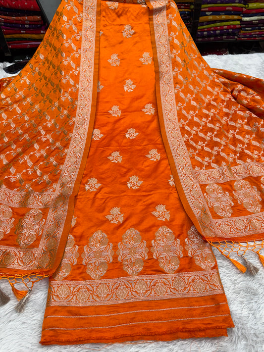 Banarasi pure mudal silk suit dupatta and plain bottom MD102