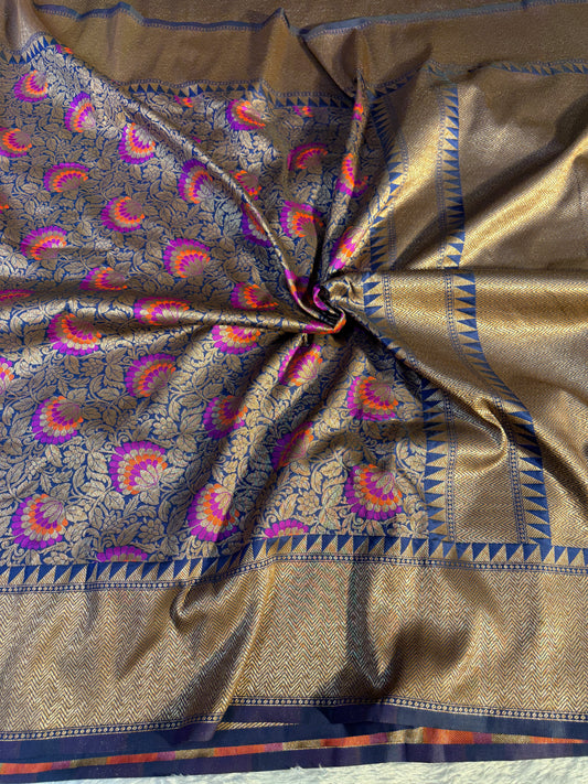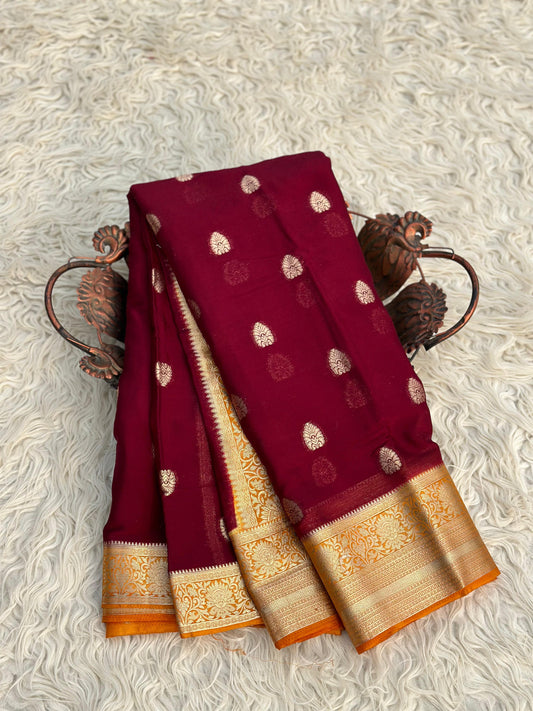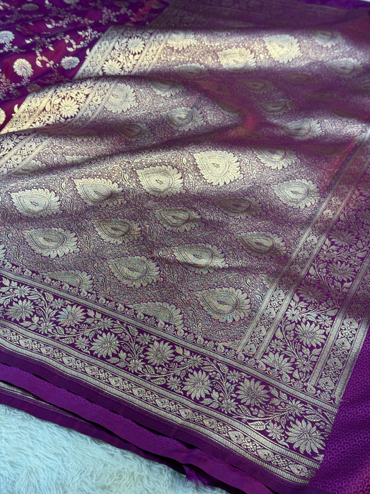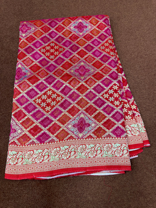 Katan Silk Saree - Red Jangla Kadhuwa Weave