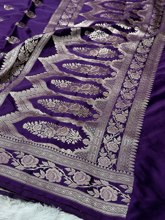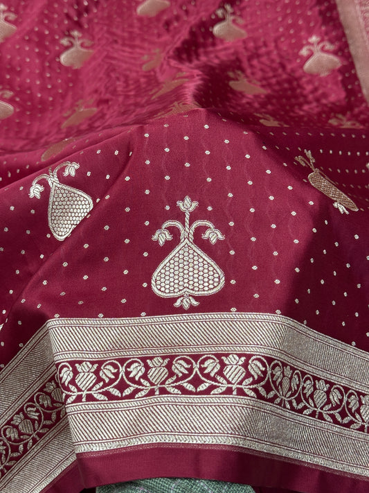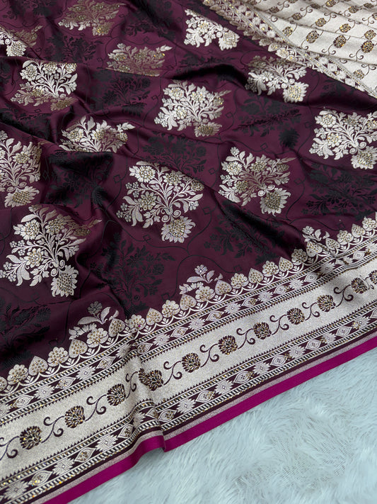 Premium maroon Banarasi Mashru katan silk saree MK165