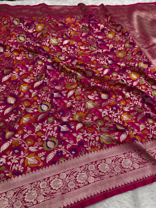 Redish pink premium tilfi Banarasi Mashru katan silk saree MK207