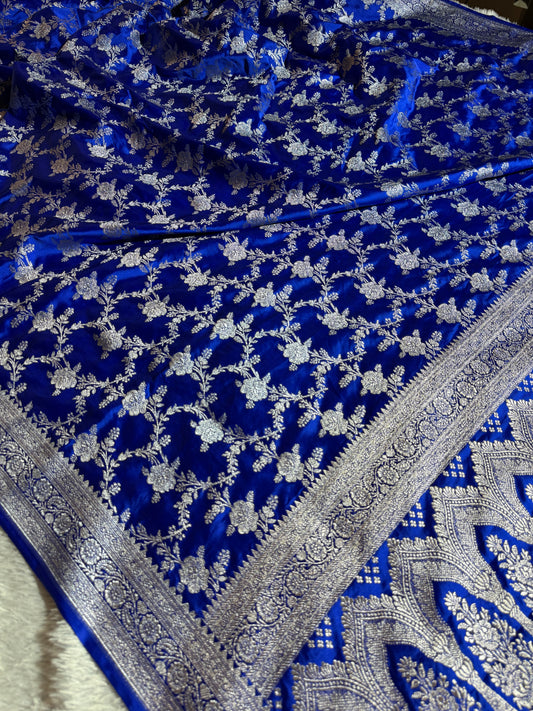 Royal blue premium Banarasi Mashru Katan silk saree MK164