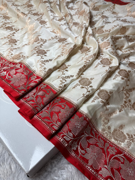 Red and half white premium Banarasi Mashru Katan silk saree MK202