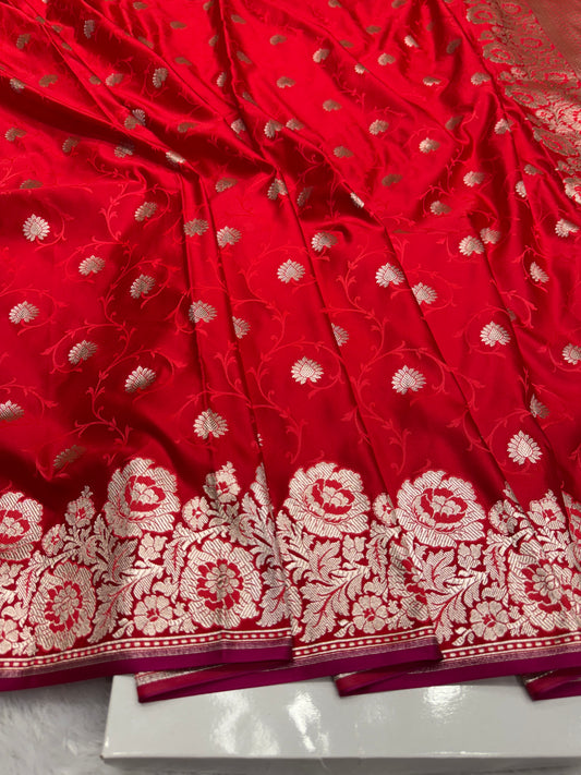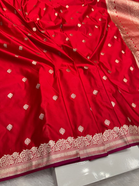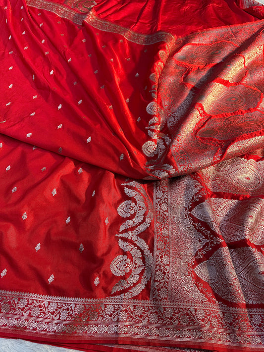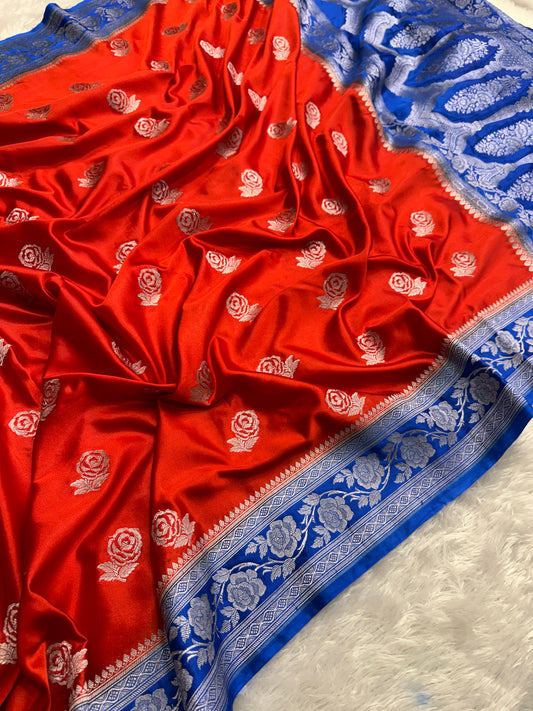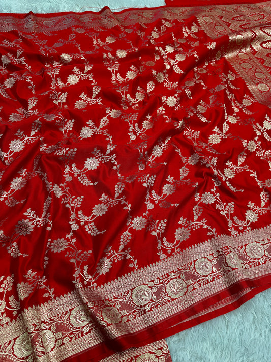 Red premium Banarasi tanchui Mashru katan silk saree MK213