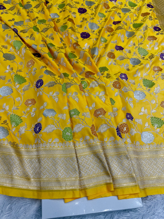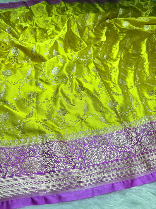 Yellow pink contrast Banarasi Mashru katan silk saree MK203