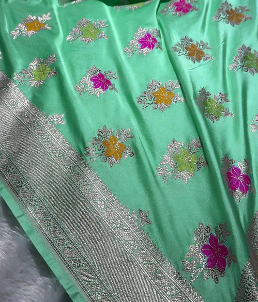 Sea green premium Banarasi Mashru katan silk saree MK216