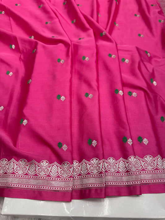 Strawberry pink premium Banarasi Mashru katan silk saree