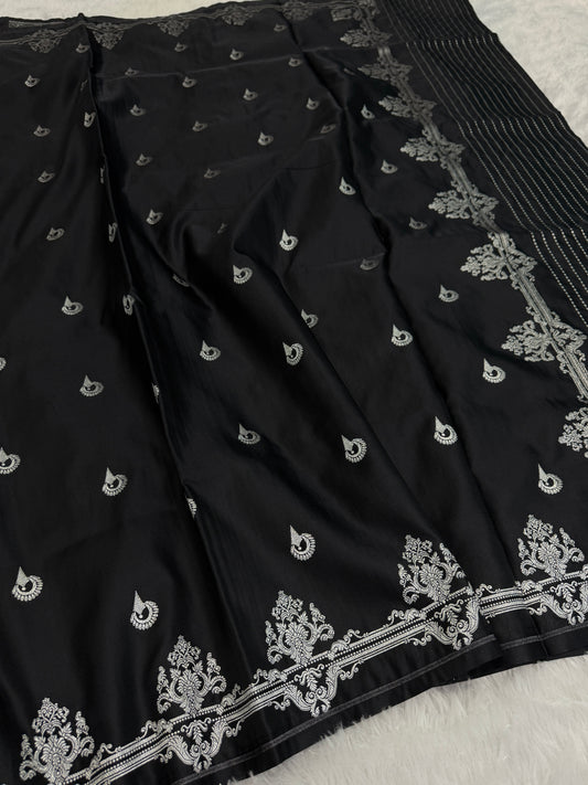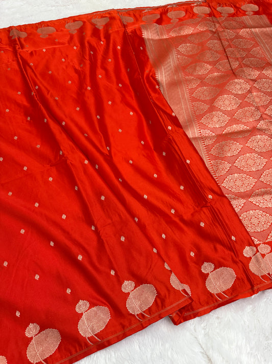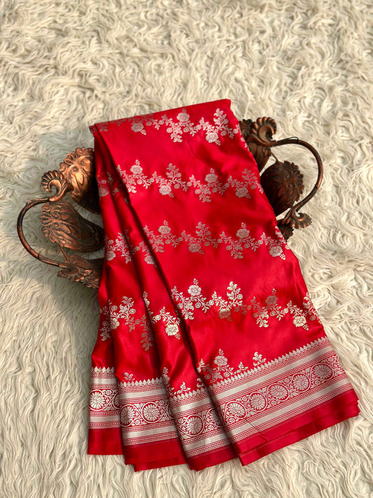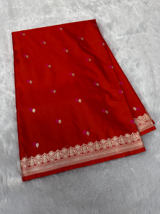 Katan silk sarees are the epitome of luxury and elegance, with a rich history that dates back centuries. Katan silk is a sturdy, durable, and pure silk fabric that is created by twisting together filaments of silk to create a stronger and more resilient yarn. This results in a saree that not only has a beautiful sheen and smooth finish but also drapes gracefully and maintains its shape over time.