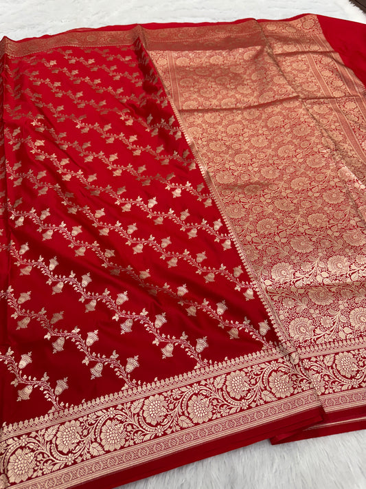 At KAASHI VASTRA in Banaras, we take immense pride in our Katan silk sarees. Each saree is a masterpiece, woven with intricate designs and motifs that reflect the rich cultural heritage of Banaras. Our skilled artisans use traditional handloom techniques to create these exquisite sarees, ensuring that every piece is unique and of the highest quality. The vibrant colors and elaborate patterns on our Katan silk sarees make them perfect for weddings, festivals, and other special occasions.