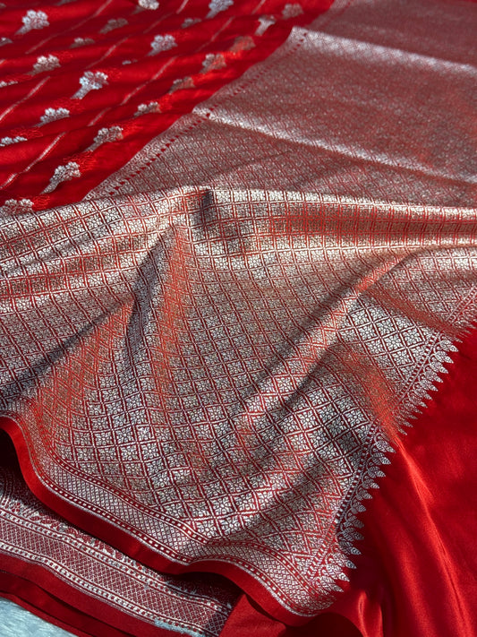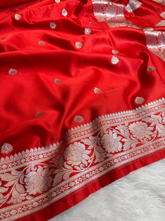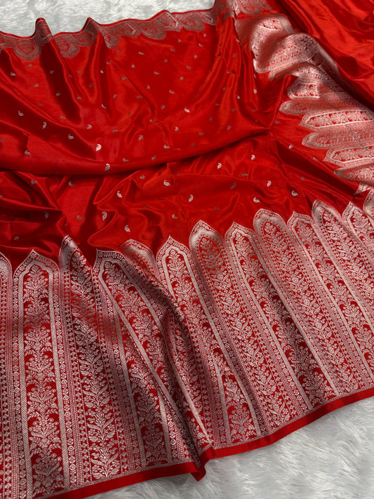 Chilli red Premium Banarasi Mashru katan silk saree MK188