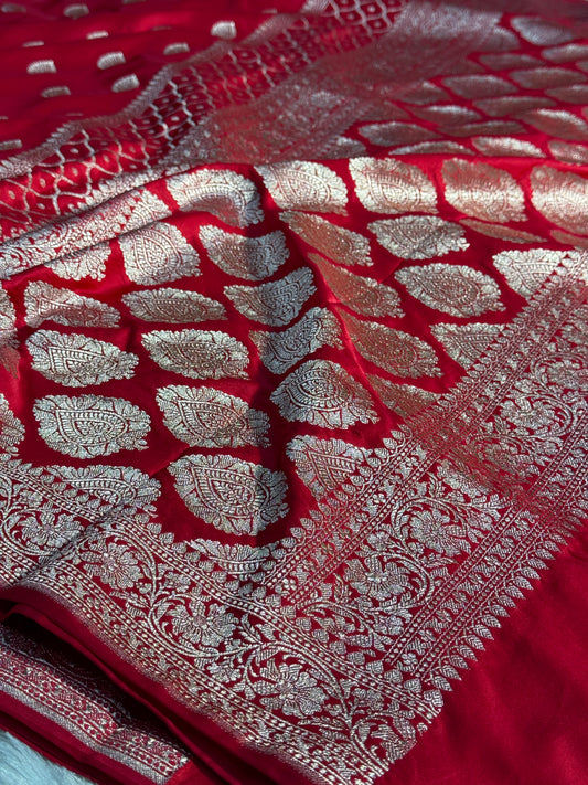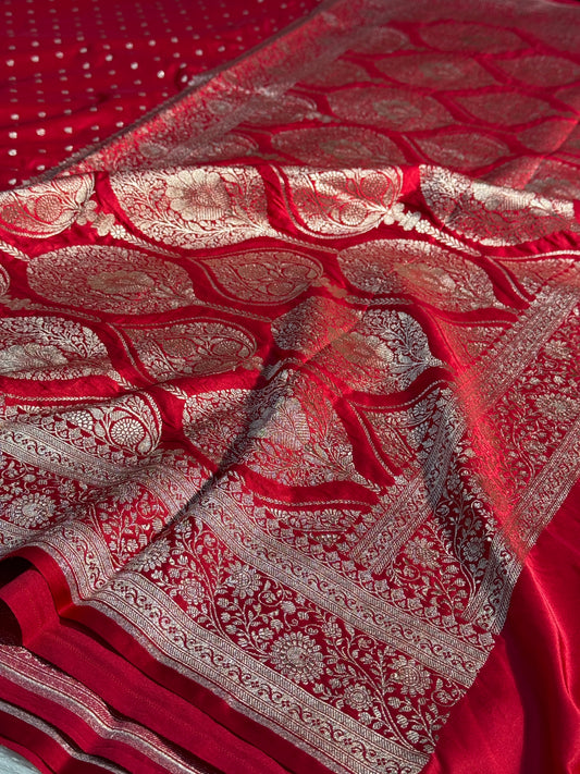 Chilli red Banarasi Mashru katan silk saree MK159