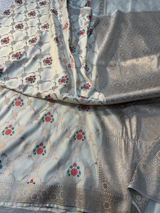 Cream Banarasi Mashru katan silk saree MK160