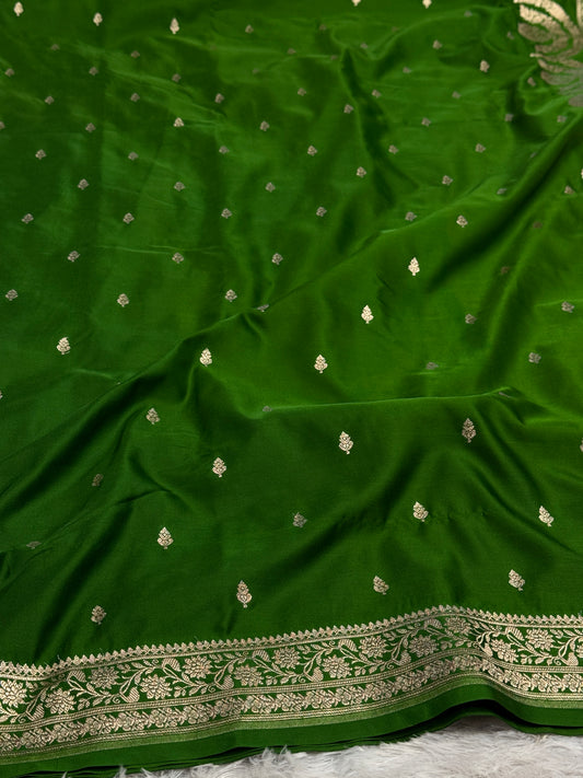 Dark green premium Banarasi Mashru katan silk saree MK164