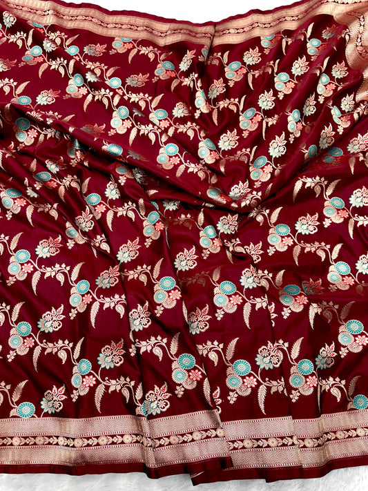 Maroon premium Banarasi Mashru katan silk saree MK195