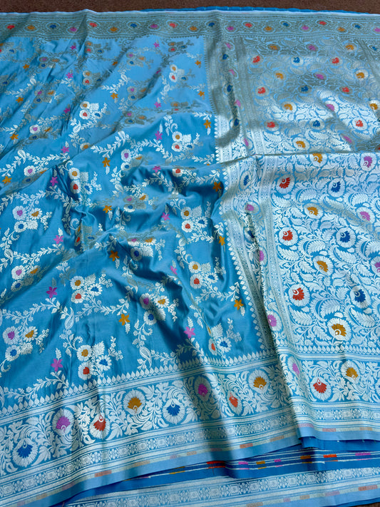 Light sea blue premium Banarasi Mashru katan silk saree MK160