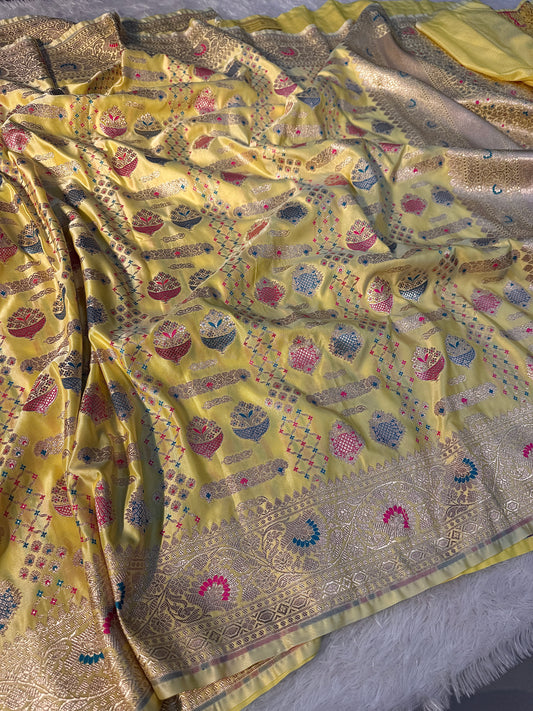 Haldi special premium tilfi Banarasi Mashru katan silk saree MK199