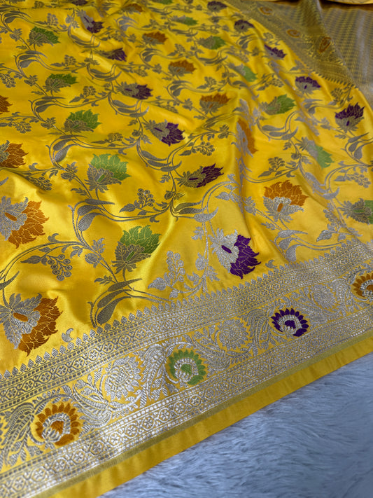 Lemon premium Banarasi Mashru katan silk saree MK171
