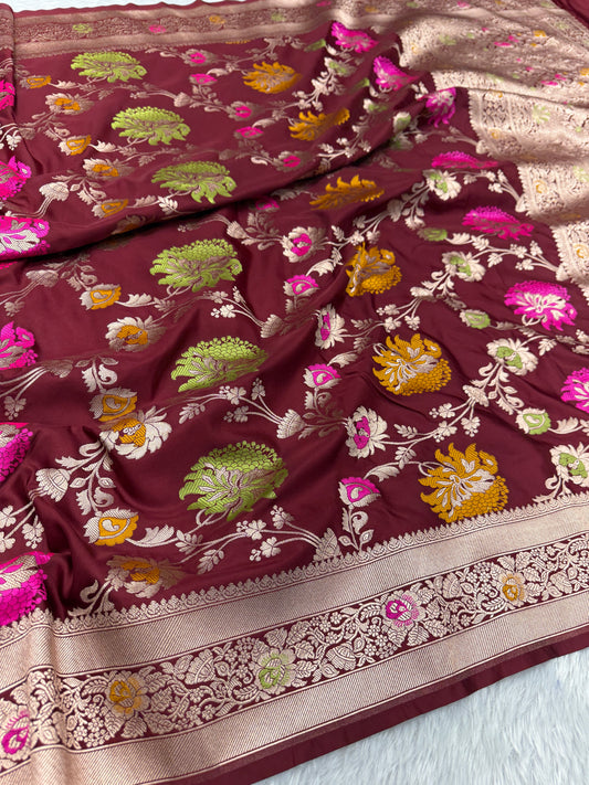 Maroon premium Banarasi Mashru katan silk saree MK164