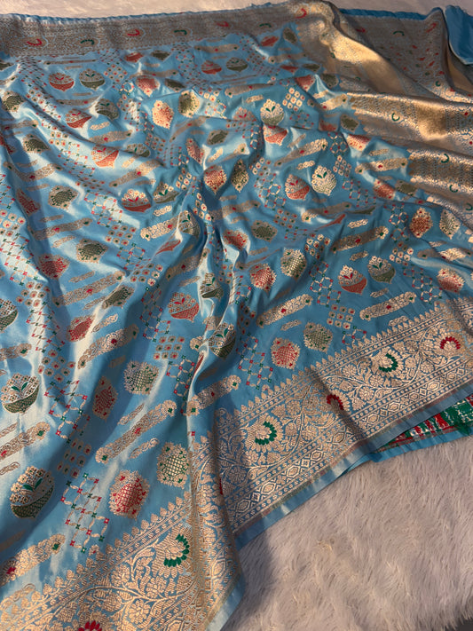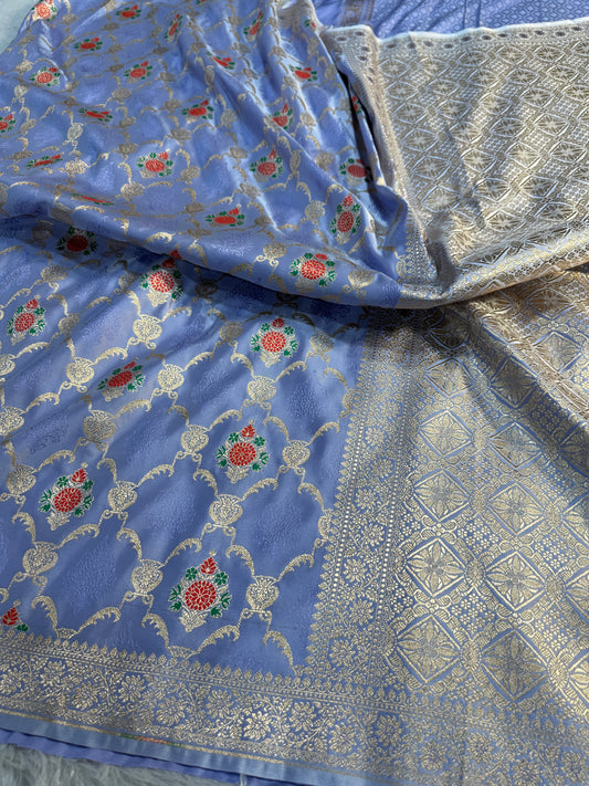 Light blue premium Banarasi Mashru katan silk saree MK171