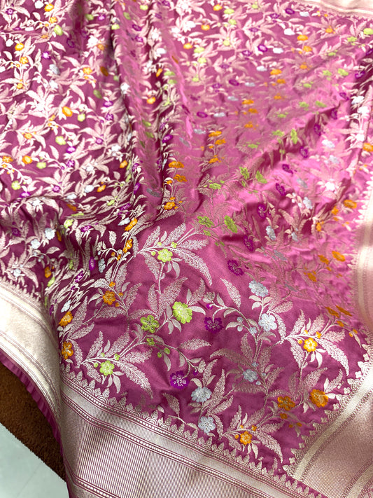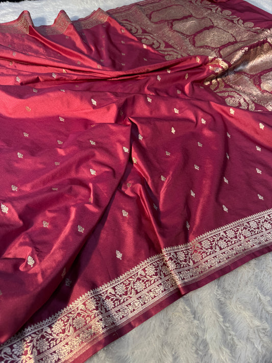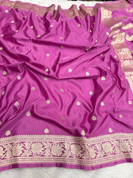 Onion pink premium Banarasi Mashru katan silk saree MK184