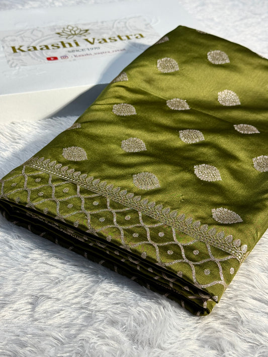 Mehandi green Banarasi Mashru katan silk saree MK157
