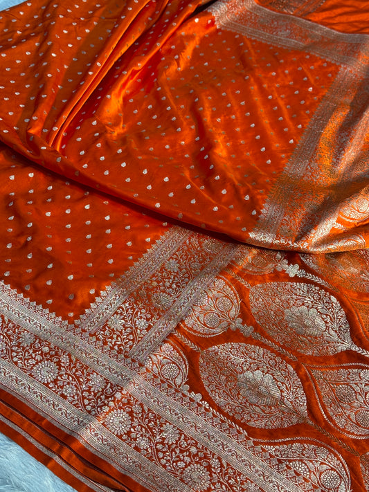 Katan silk sarees are the epitome of luxury and elegance, with a rich history that dates back centuries. Katan silk is a sturdy, durable, and pure silk fabric that is created by twisting together filaments of silk to create a stronger and more resilient yarn. This results in a saree that not only has a beautiful sheen and smooth finish but also drapes gracefully and maintains its shape over time.