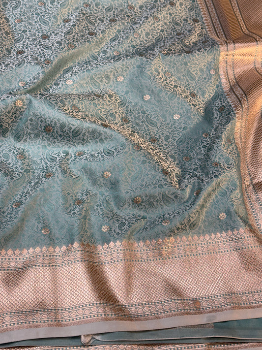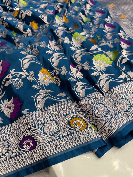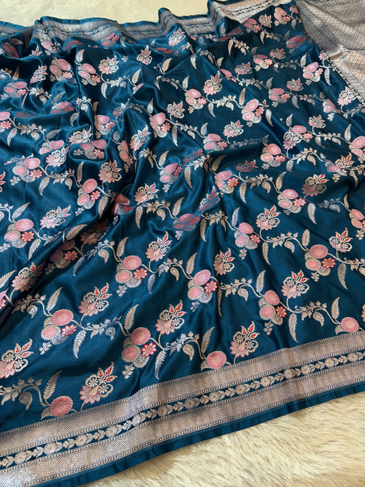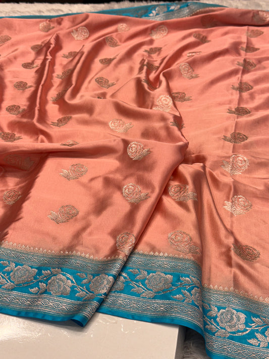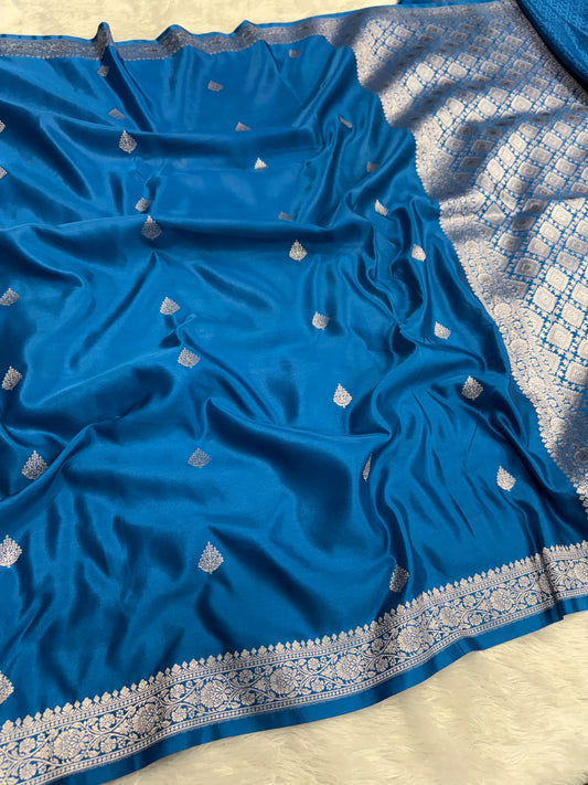 Peacock blue Premium Banarasi Mashru katan silk saree MK201