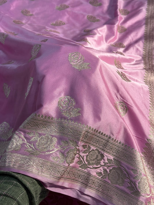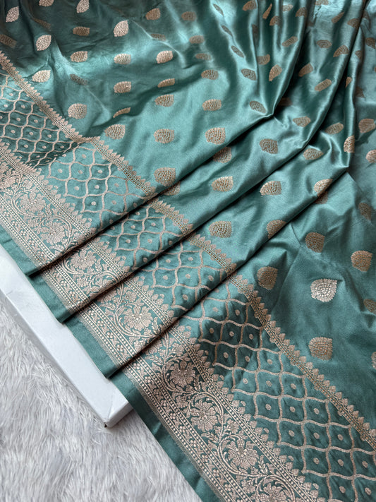 Pista green premium Banarasi Mashru katan silk saree MK219