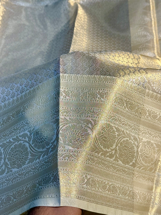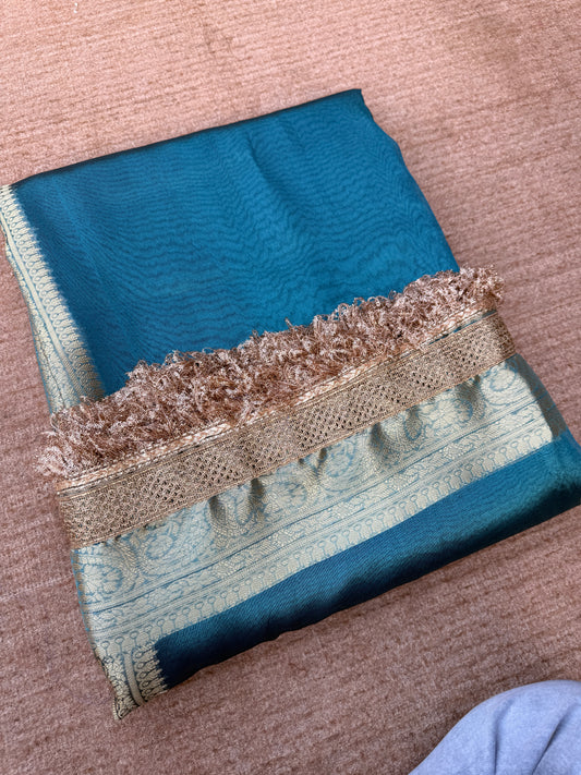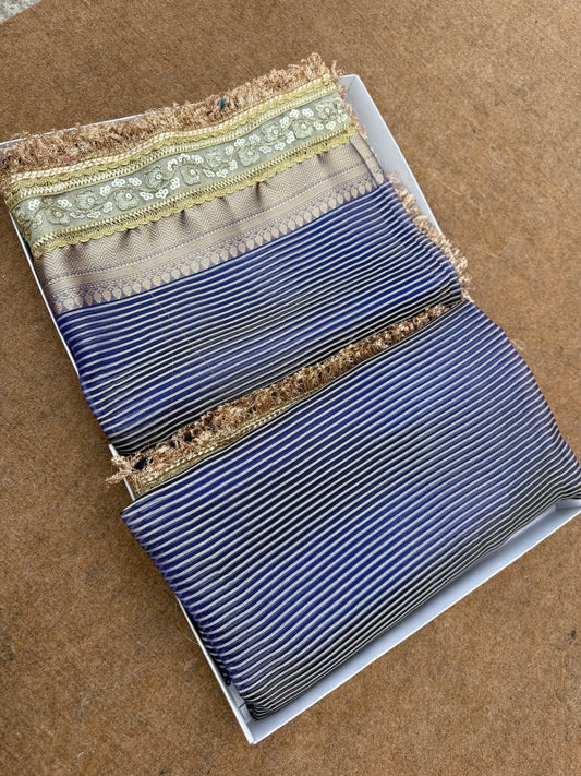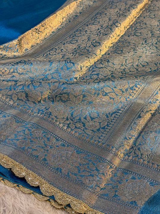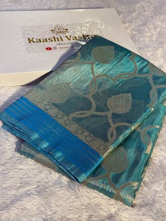Sky blue Banarasi tissue silk saree with lace border TS106