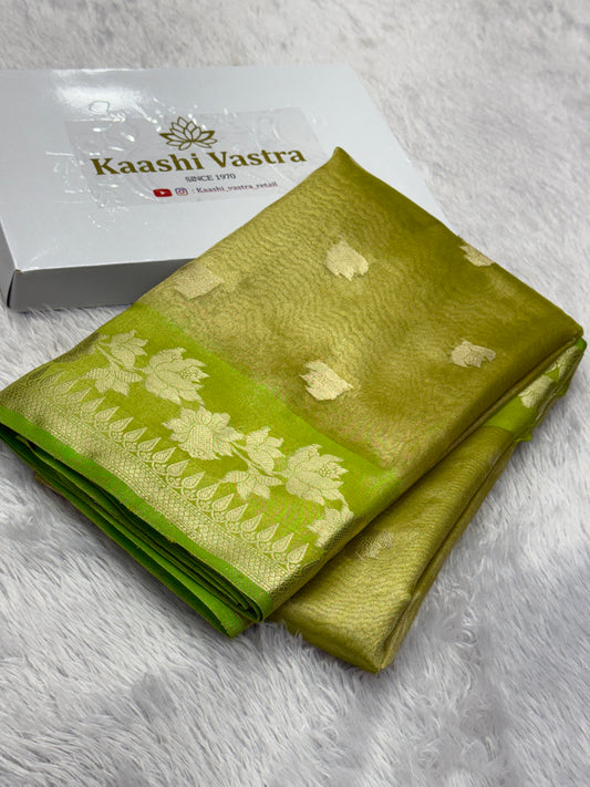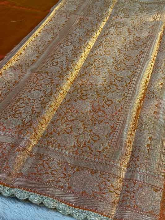 Discover the elegance of our Hand-Woven Tissue Silk Banarasi Saree, crafted with the finest quality tissue silk. At KaashiVastra, we take pride in creating luxurious sarees that are timeless additions to any wardrobe. This exquisite piece features intricate designs and rich colors, making it perfect for both formal events and intimate gatherings.