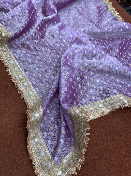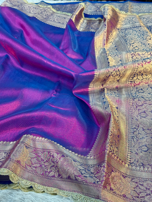 Baigni color Banarasi tissue silk saree with lace border TS106