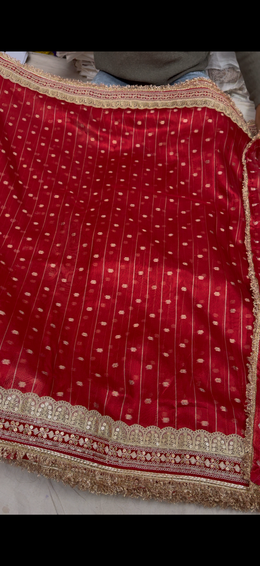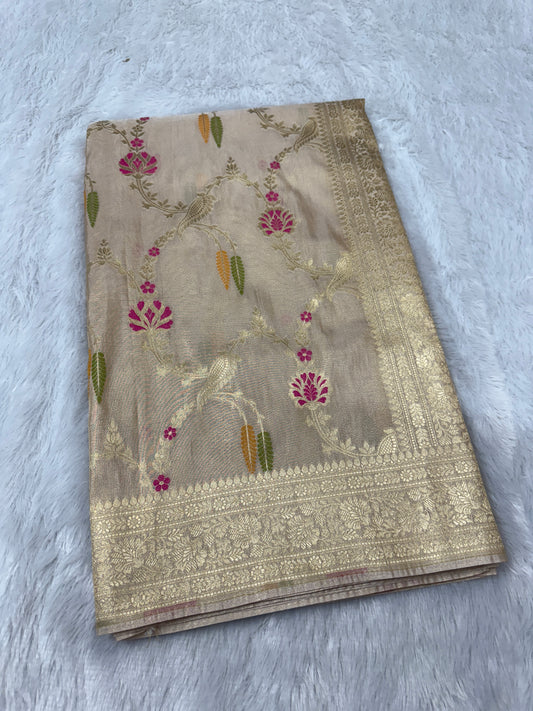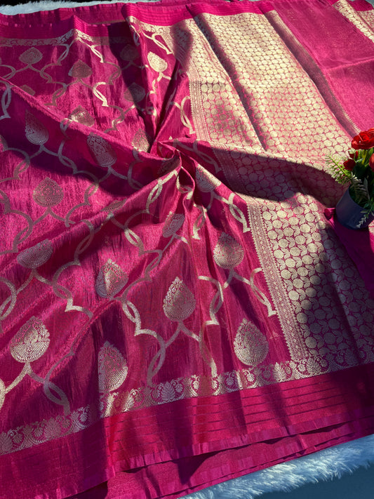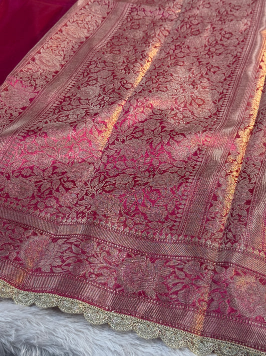 Rani pink Banarasi tissue silk saree with lace border TS106
