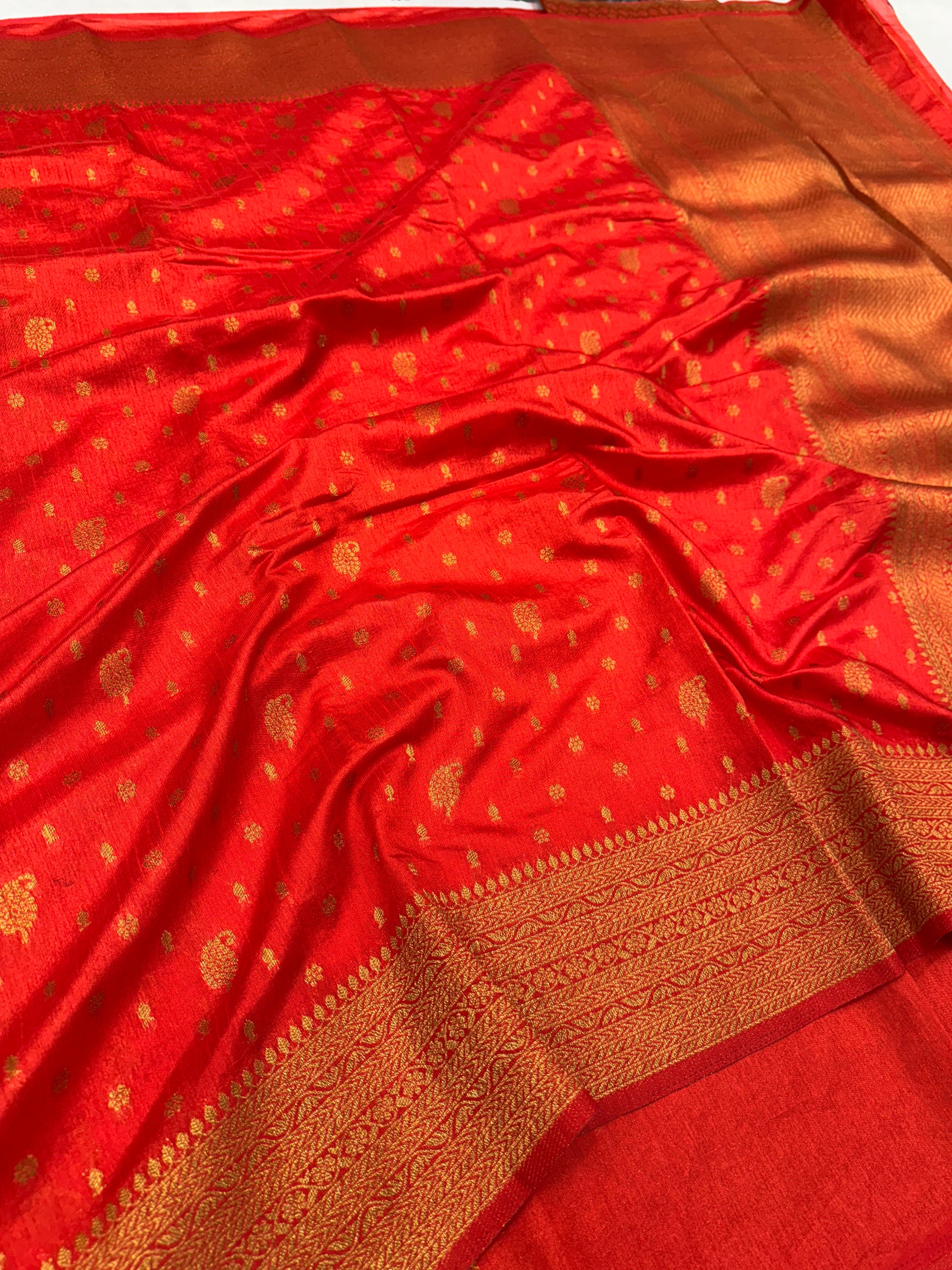 This Banarasi mulberry cotton silk saree is a blend of quality and elegance. Made with mulberry cotton silk material, it offers a luxurious drape and smooth texture. This saree is an ideal choice for any occasion, adding a touch of sophistication and style to your wardrobe.