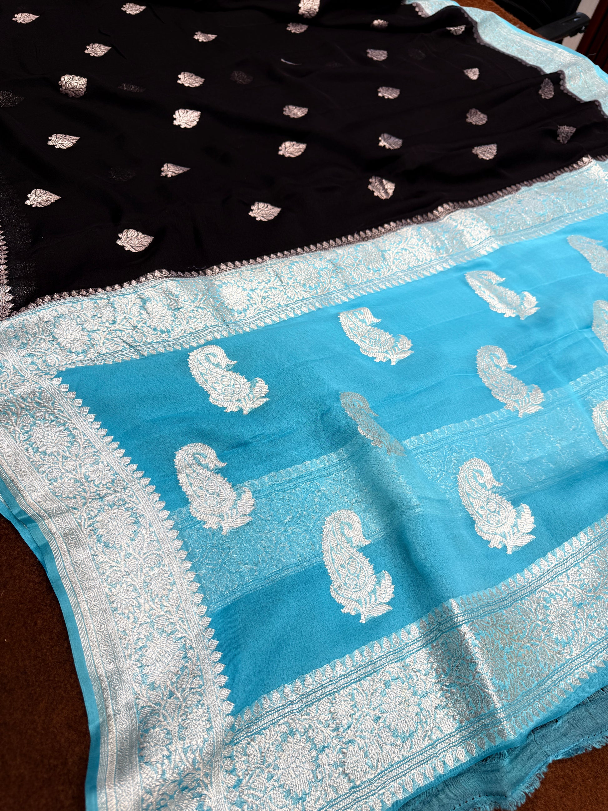 silk sareeExperience luxury and elegance with our Banarasi pure handloom khaddi chiffon silk saree KG101. Made with carefully handwoven khaddi chiffon silk, this saree is a true testament to traditional craftsmanship. Its pure silk fabric provides a soft and smooth feel, making it a perfect choice for any occasion. Elevate your style with our exquisite saree today.