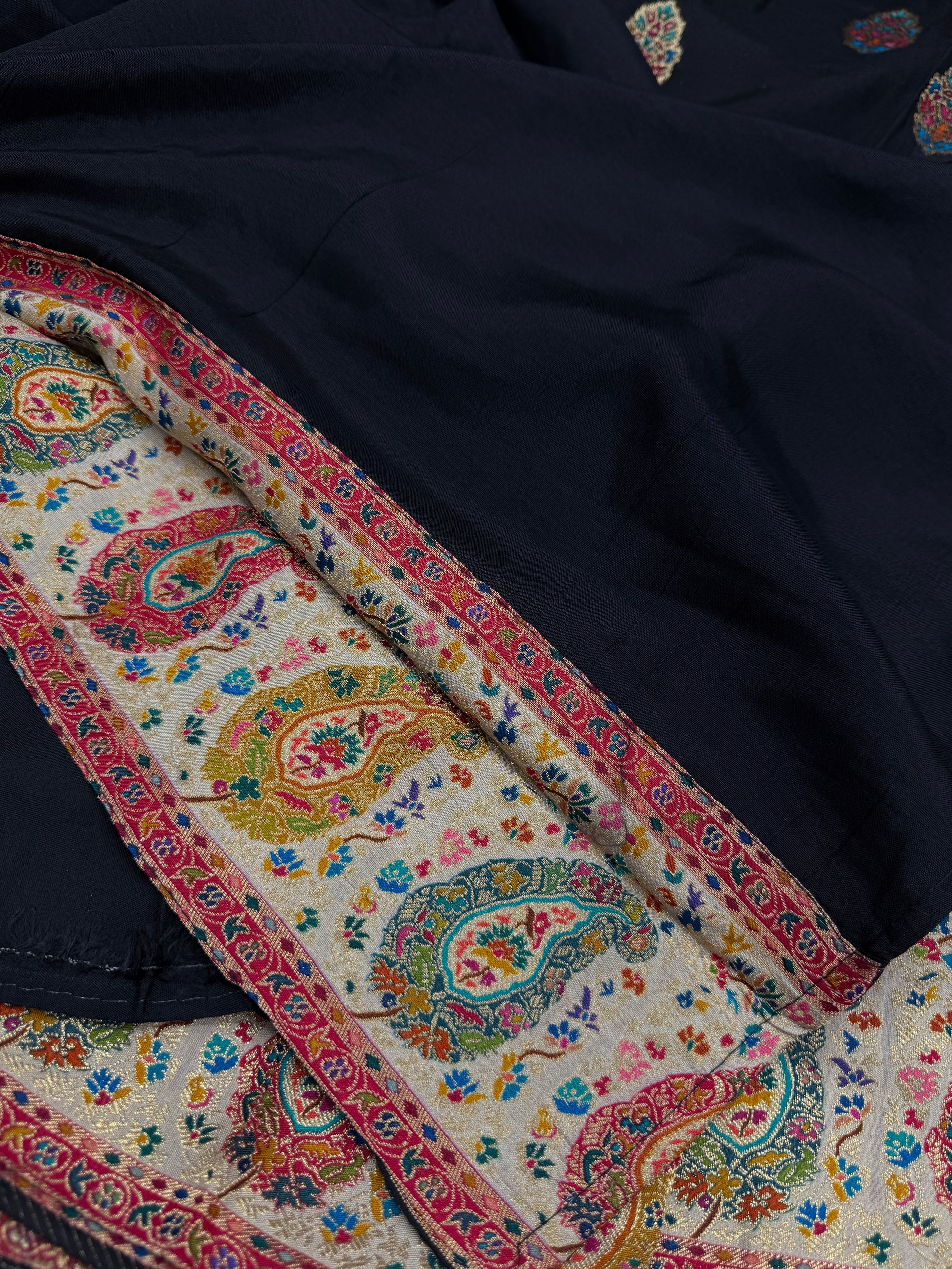 Expertly crafted from the finest Banarasi pure satin pashmina silk, this saree exudes elegance and luxury. The intricate designs and silky smooth texture offer a sumptuous drape, while the high-quality fabric ensures long-lasting comfort and style. Elevate your wardrobe with this timeless and luxurious saree.
