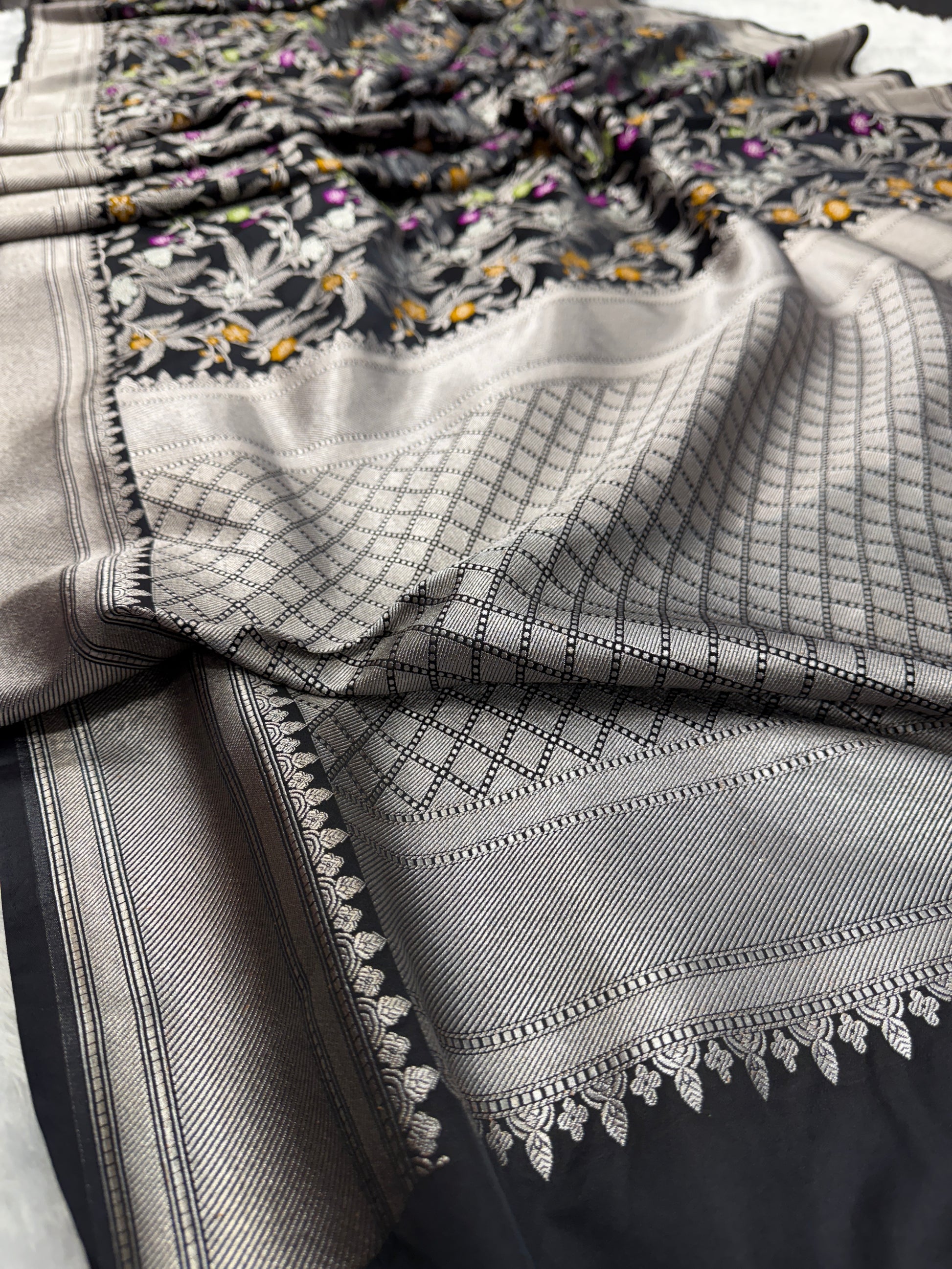 Mashru silk has a silk warp and a catalon weft and warp-faced fabric, or katan which means that the face of the cloth is predominantly silk and the reverse is catalon. It is a lightweight fabric and as soft as butter.