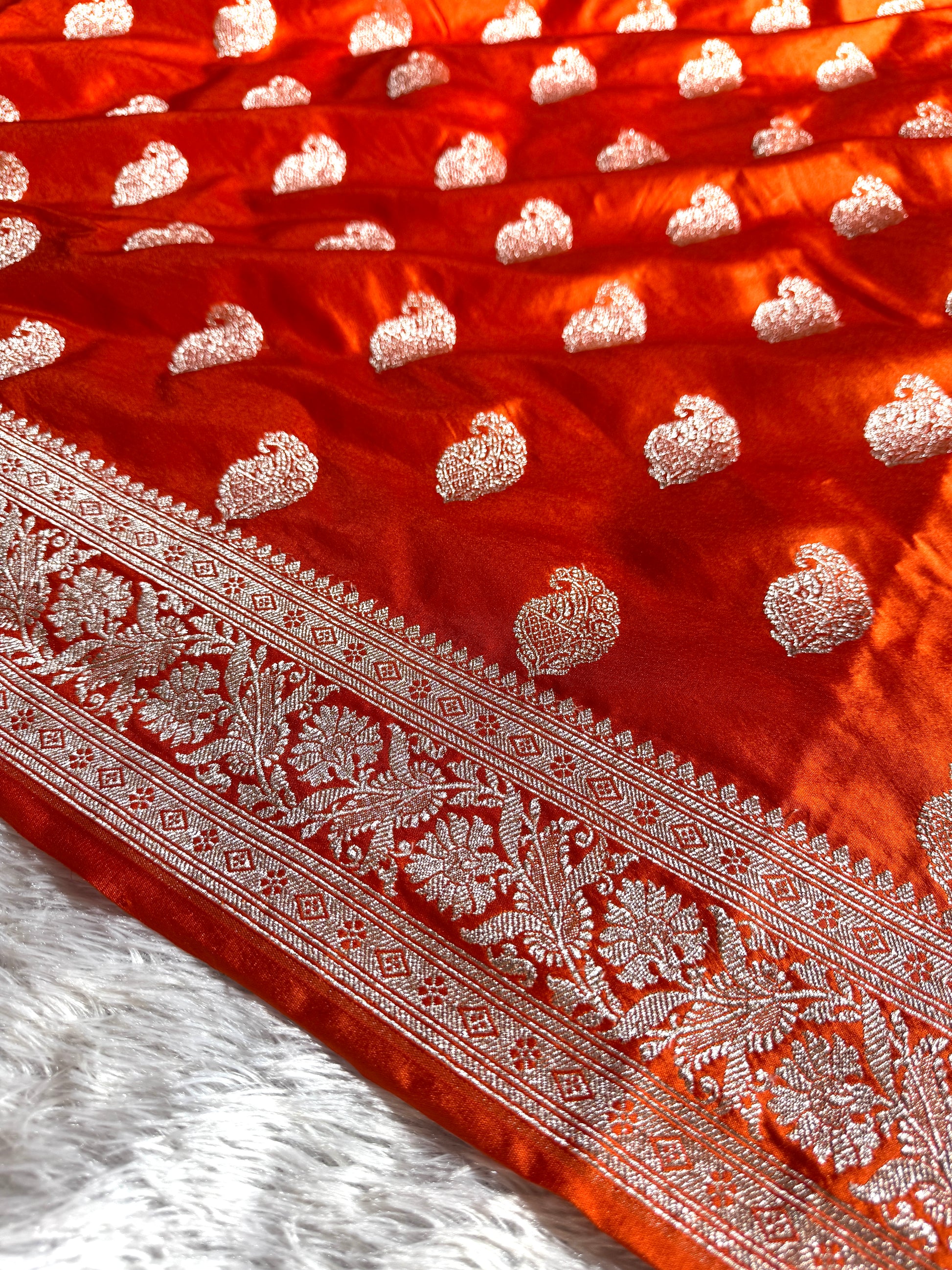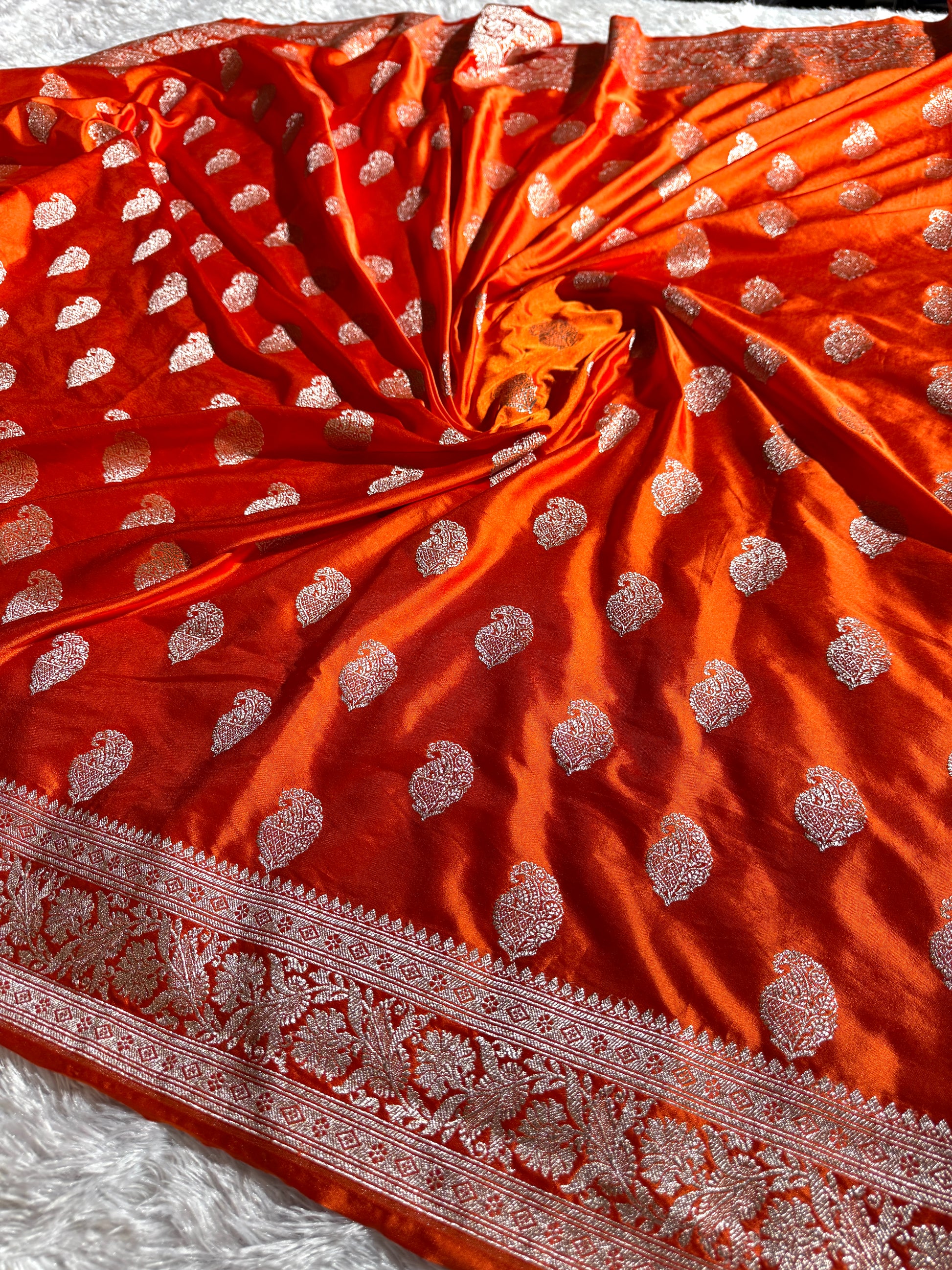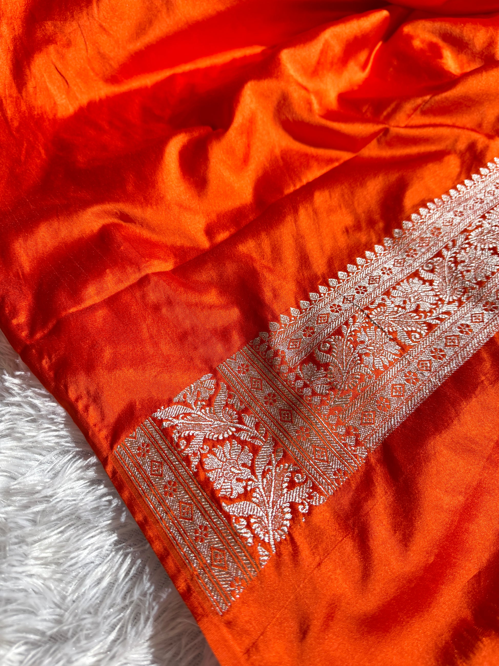 Orange color premium Banarasi Mashru katan silk saree MK220