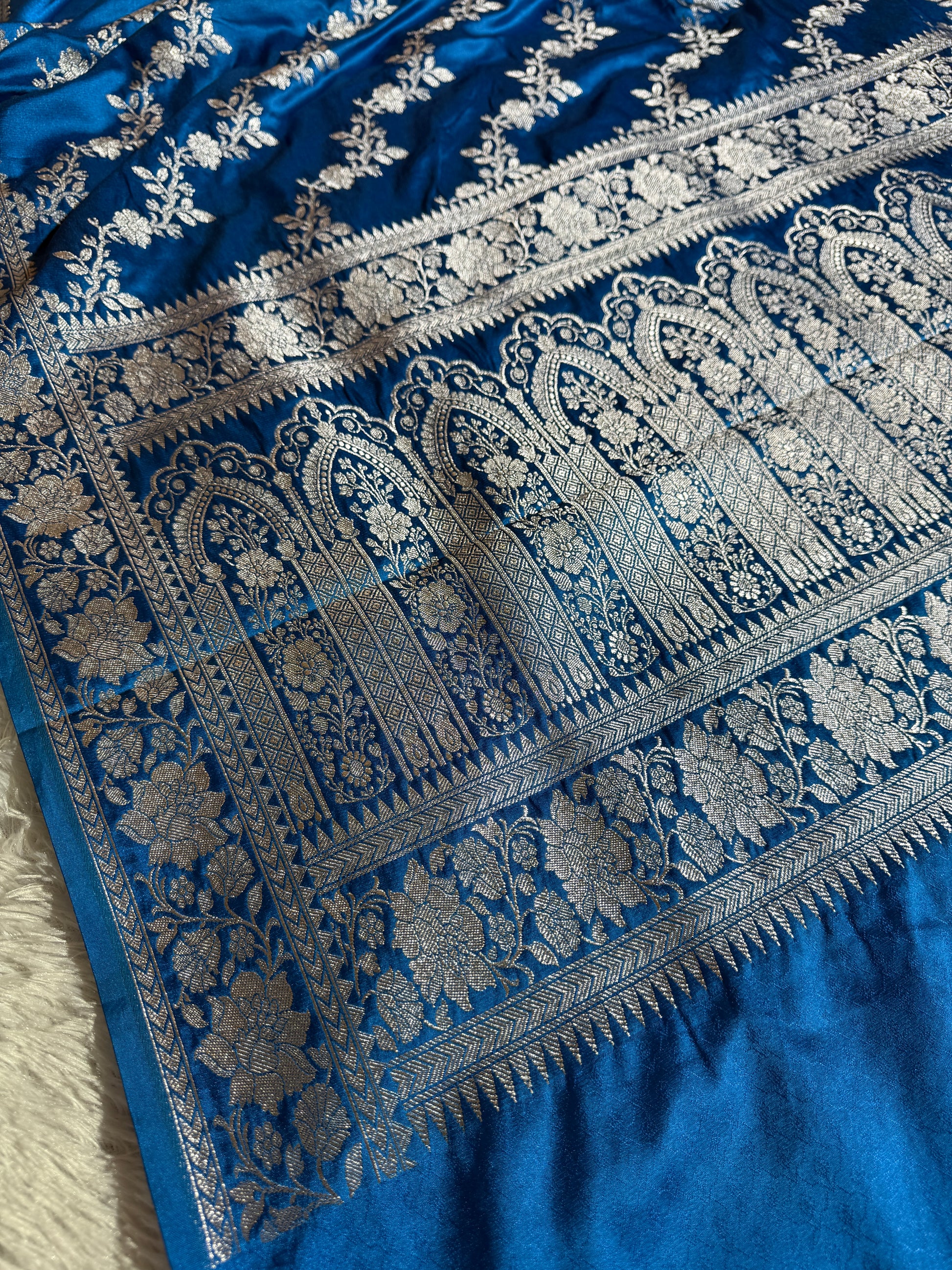 Sky blue premium Banarasi Mashru katan silk saree MK204