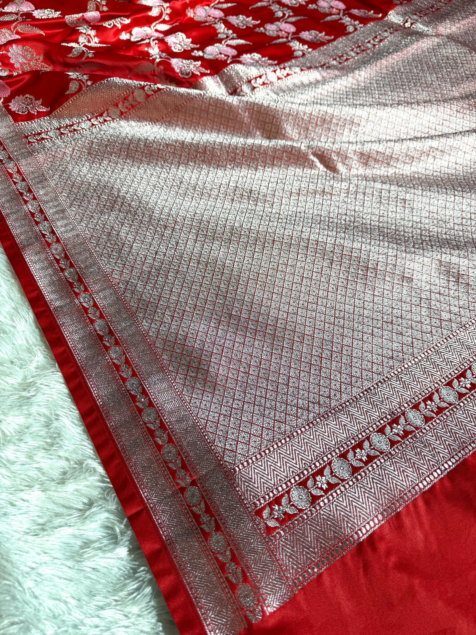 Chilli red Premium Banarasi Mashru katan silk saree MK188